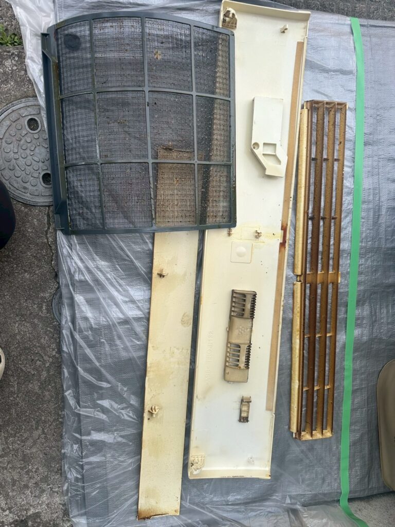 何十年もお掃除をしていないので、油汚れが強いエアコンでした。